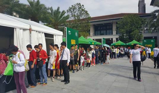富力養(yǎng)生谷推崇逃離亞健康、回歸自然和本真生活,收獲健康與歡樂。2000人齊聚南昆山谷,逃離城市喧囂,來到“大氧吧”肆意奔跑,釋放活力。中午十二點,參賽者們便來到現(xiàn)場簽到、領(lǐng)取運(yùn)動大禮包、造型打扮等等。
